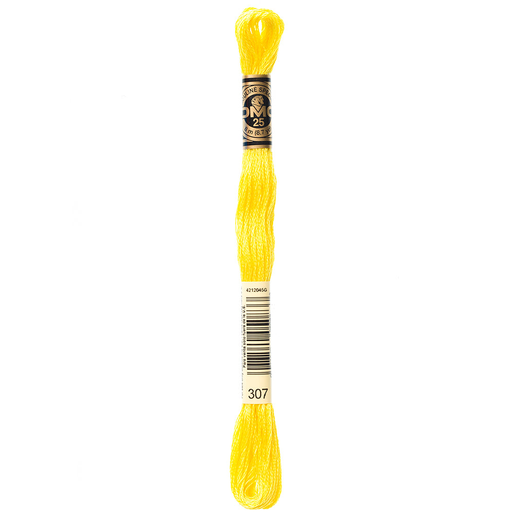 Elevate your embroidery with DMC #117 Cotton 6 Strand Floss 8m - 307, a vibrate yellow thread. Made from 100% long staple Egyptian cotton, this double mercerized thread showcases a brilliant sheen. Its 6 strands can be separated for customized thickness, suitable for all fabric types. Plus, it's 100% colorfast and resistant to fading. Produced in France with top-quality standards.